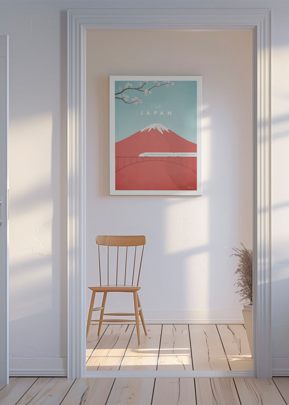A print from the japanese wall art collection, from the mind of Henry Rivers, with red tones, and in vertical position. Travel without leaving the sofa with these and other map and city prints. The final touch for your home decor.