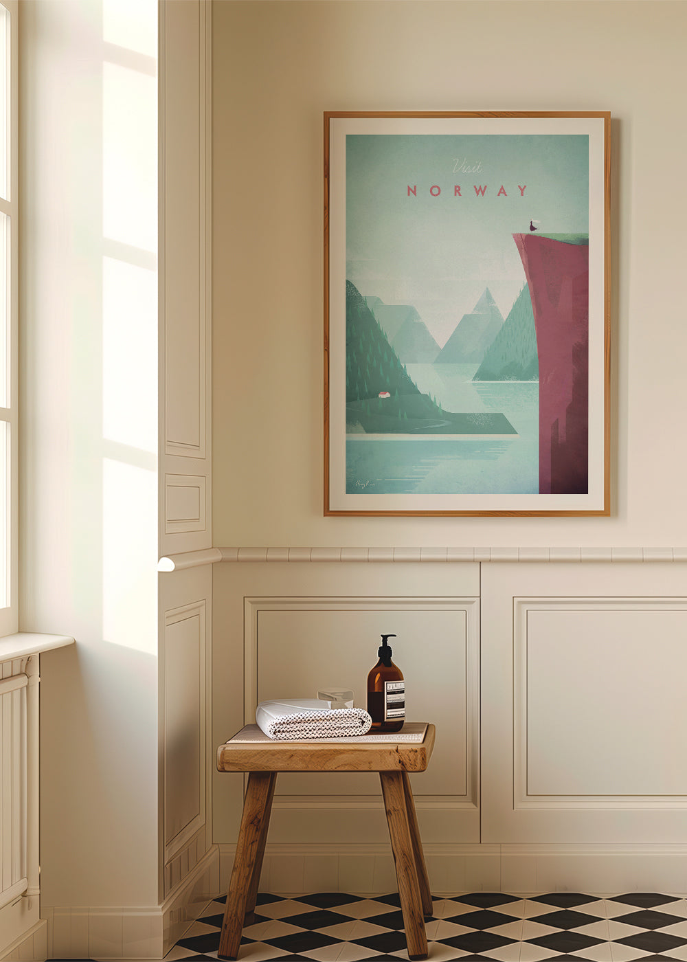 This piece from the travel posters collection, from the collection of the artist Henry Rivers, with tones of blue, and vertical layout. Travel without leaving the sofa with these and other map and city prints. Free your creative spirit, decorate your walls with art.