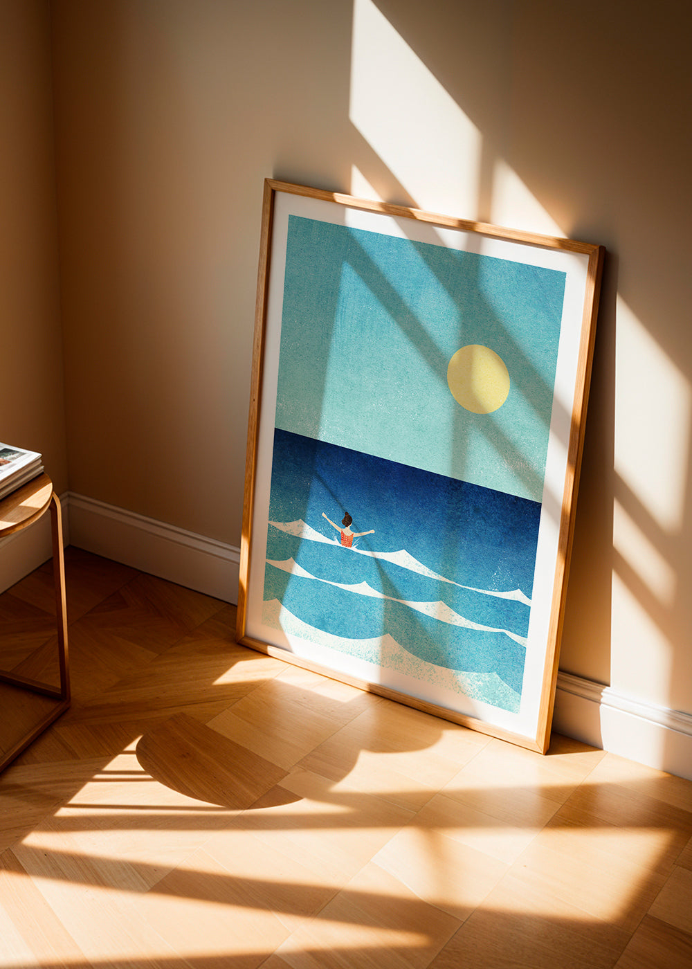 A print from our ocean wall art and prints series, made by Henry Rivers, with shades of blue, and vertical layout. Nature in all its splendour, landscape prints convey a sense of calm. Elegant walls for chic homes.