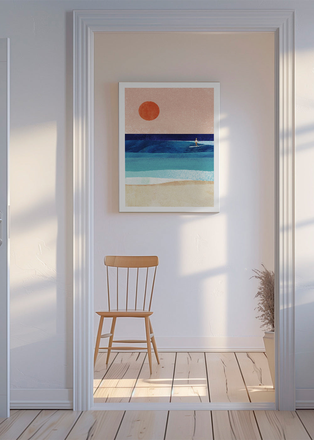 A design from the ocean wall art and prints collection, created by Henry Rivers, with blue, and in vertical position. The tranquillity and freedom of landscape prints is one of a kind. Fresh and original.