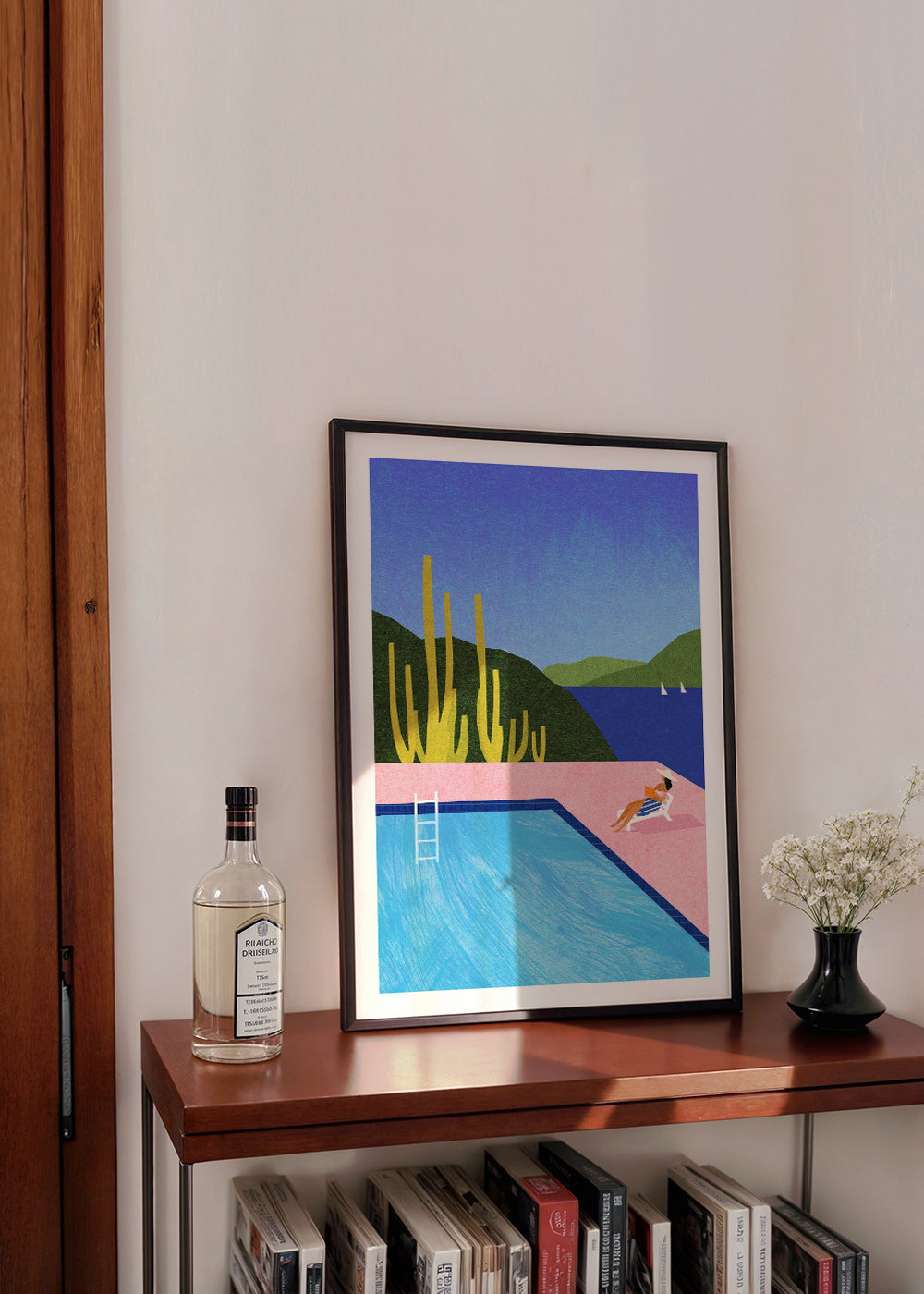 A poster from the ocean wall art and prints series, from the collection of the artist Henry Rivers, with shades of blue, and to hang in vertical position. The tranquillity and freedom of landscape prints is one of a kind. Make your house a stylish home.