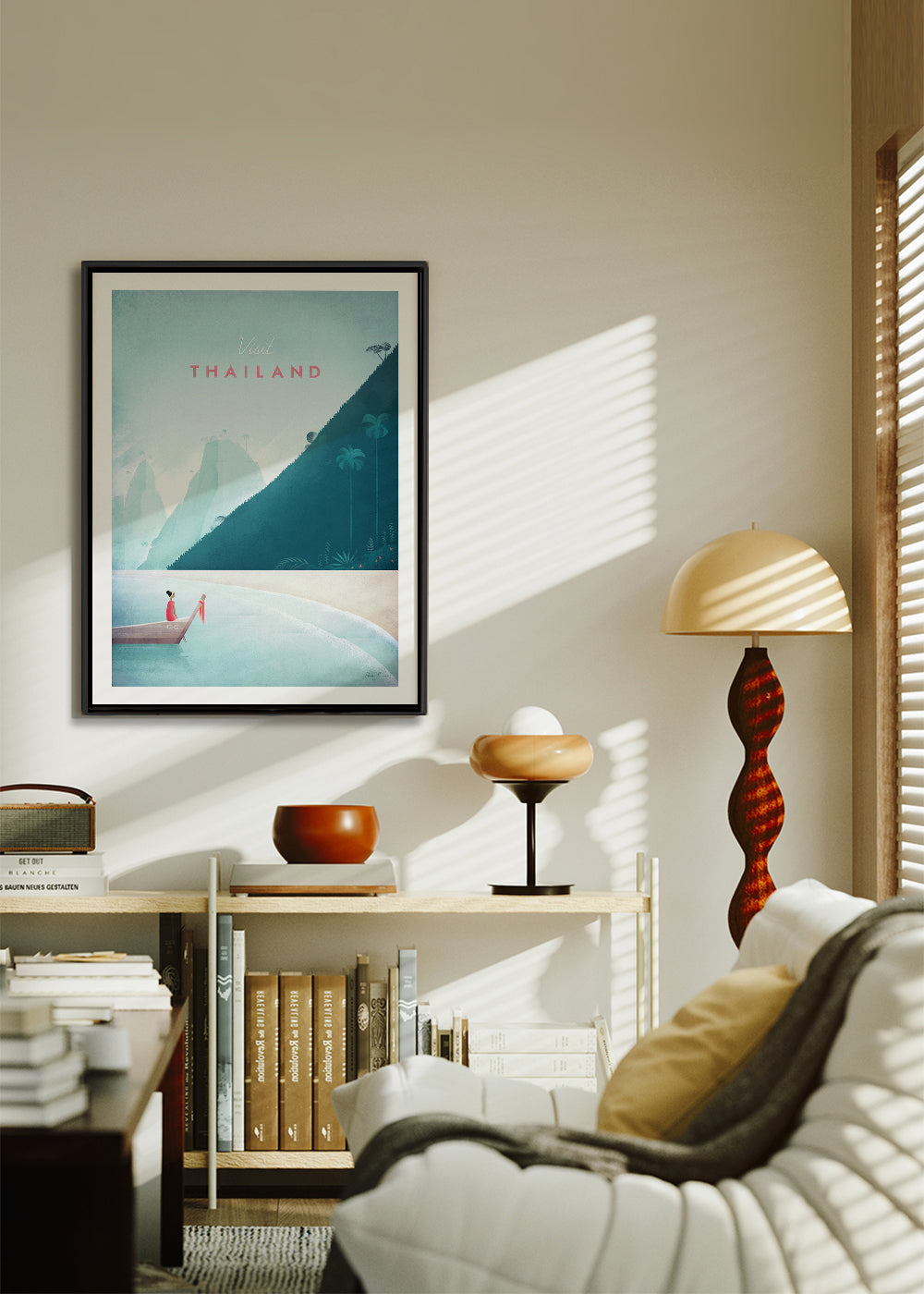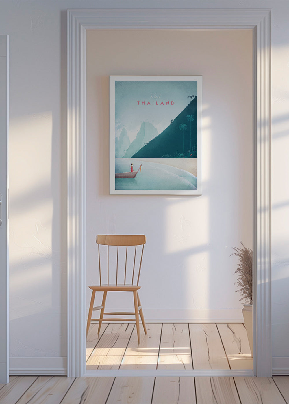 This print inspired by the collection of travel posters, made by Henry Rivers, with touches of blue, and facing vertically. Travel without leaving the sofa with these and other map and city prints. Free your creative spirit, decorate your walls with art.