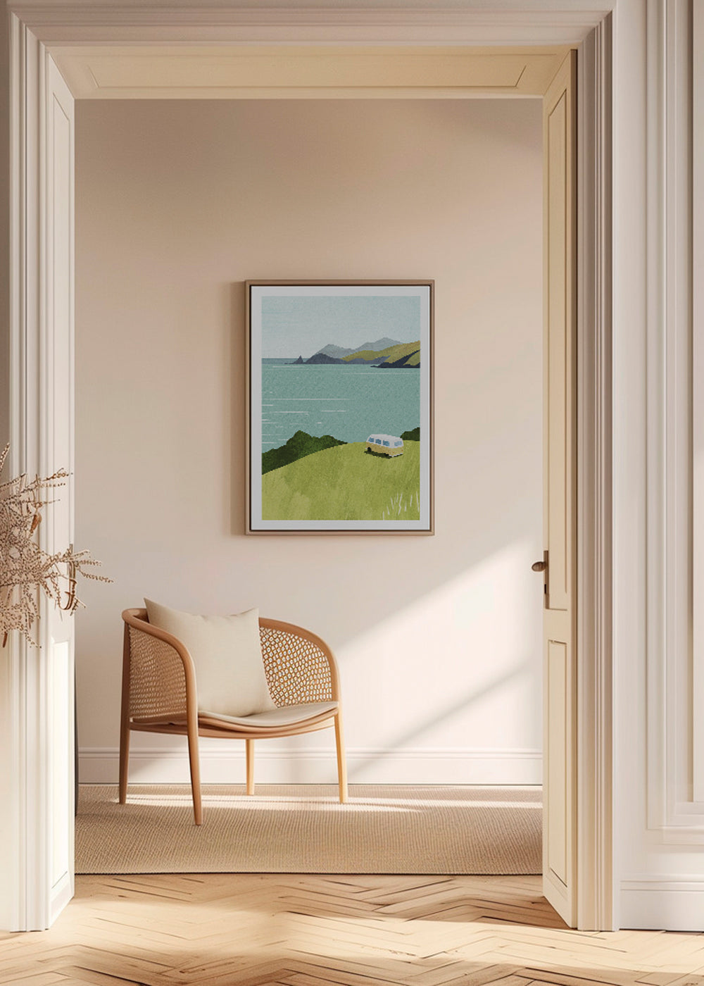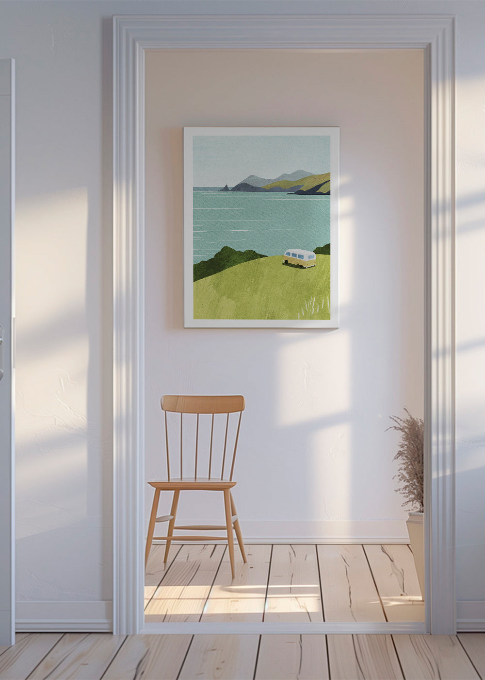 This design from our ocean wall art and prints category, from the collection of the artist Henry Rivers, with touches of blue, and facing vertically. Landscape decoration brings a breath of fresh air to any room. Elegant walls for chic homes.