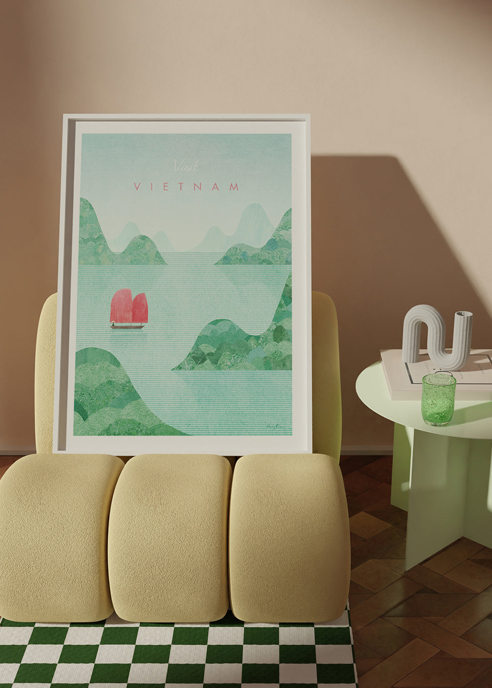 A poster from our travel posters collection, from the collection of the artist Henry Rivers, in blue shades, and to hang in vertical position. If you love wandering around discovering new parts of the world, this print is for you. Free your creative spirit, decorate your walls with art.