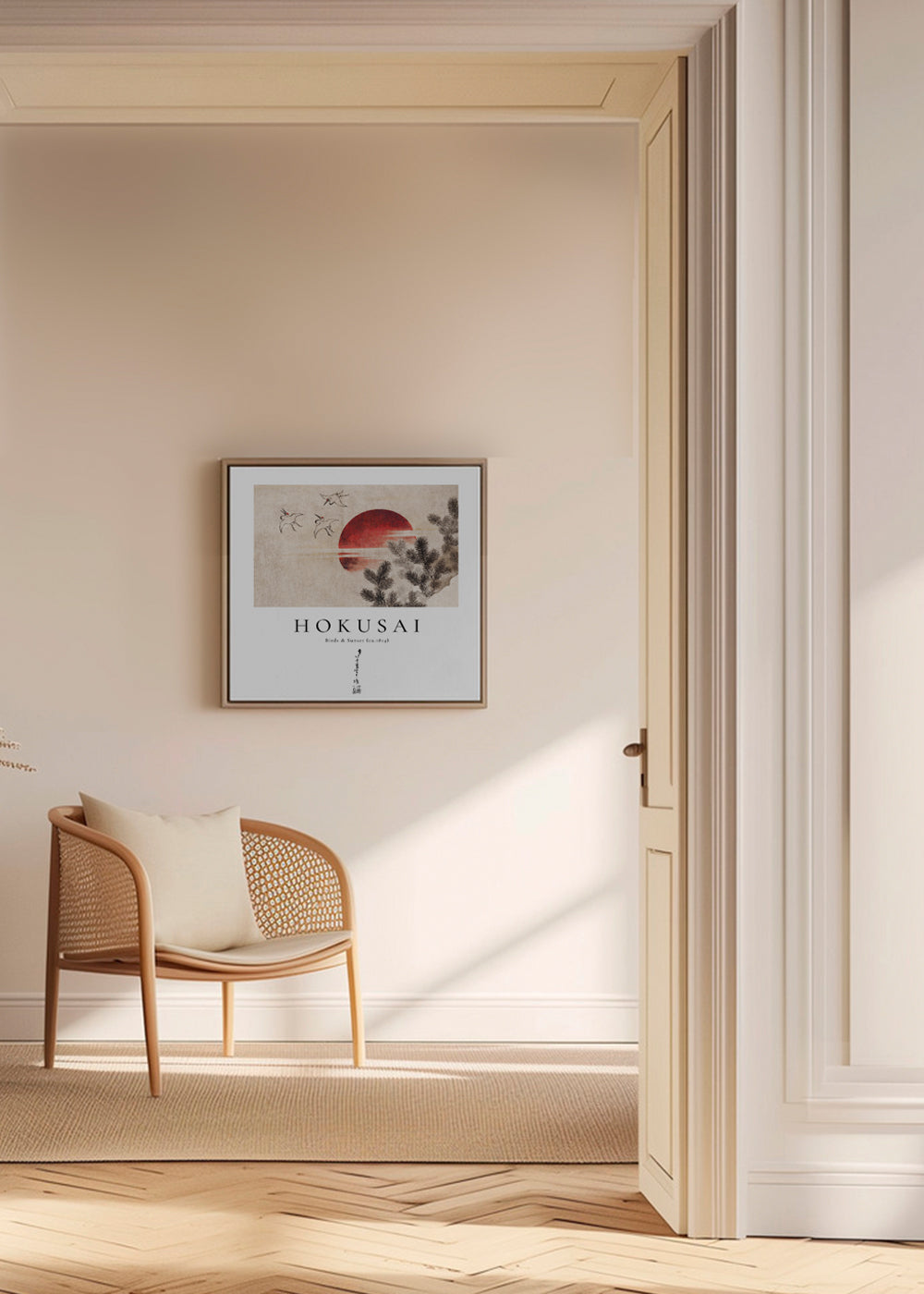 Scandinavian wall art Katsushika Hokusai birds and sunset from Album of Sketches - Square