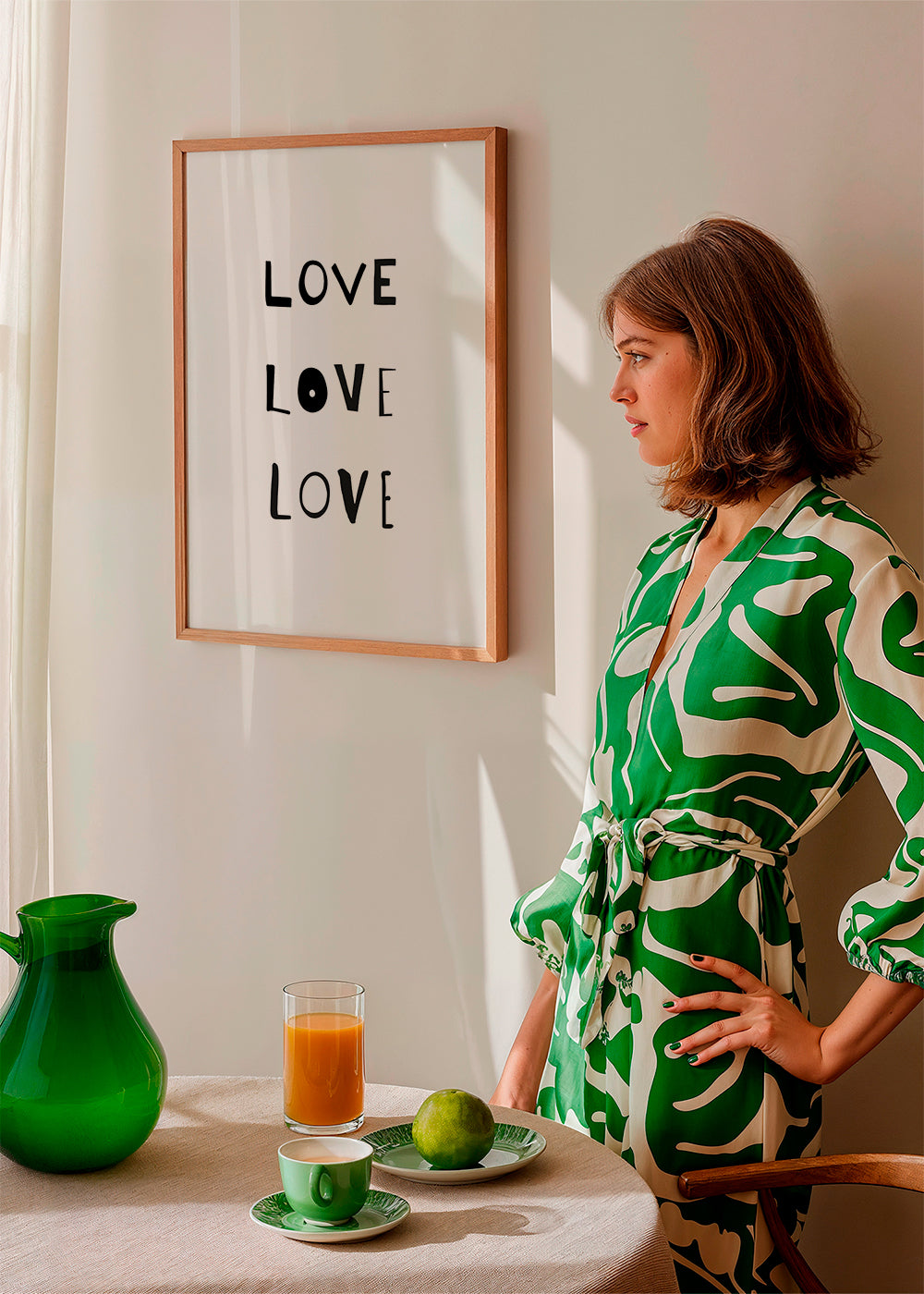 A print from the love wall art series, by the artist Marta Munte, with multicolor, and with vertical layout. With its Nordic-style design, this print goes perfectly with modern decor. Let your walls tell a story.