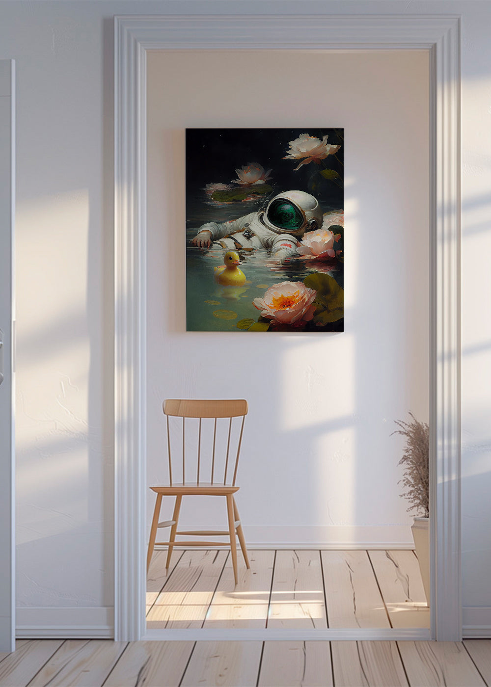 Beautiful poster from our astronaut posters series, made by Dikhotomy, in tones of green, and facing vertically. Illustrated posters are the perfect way to fill your walls with creativity. The final touch for your home decor.