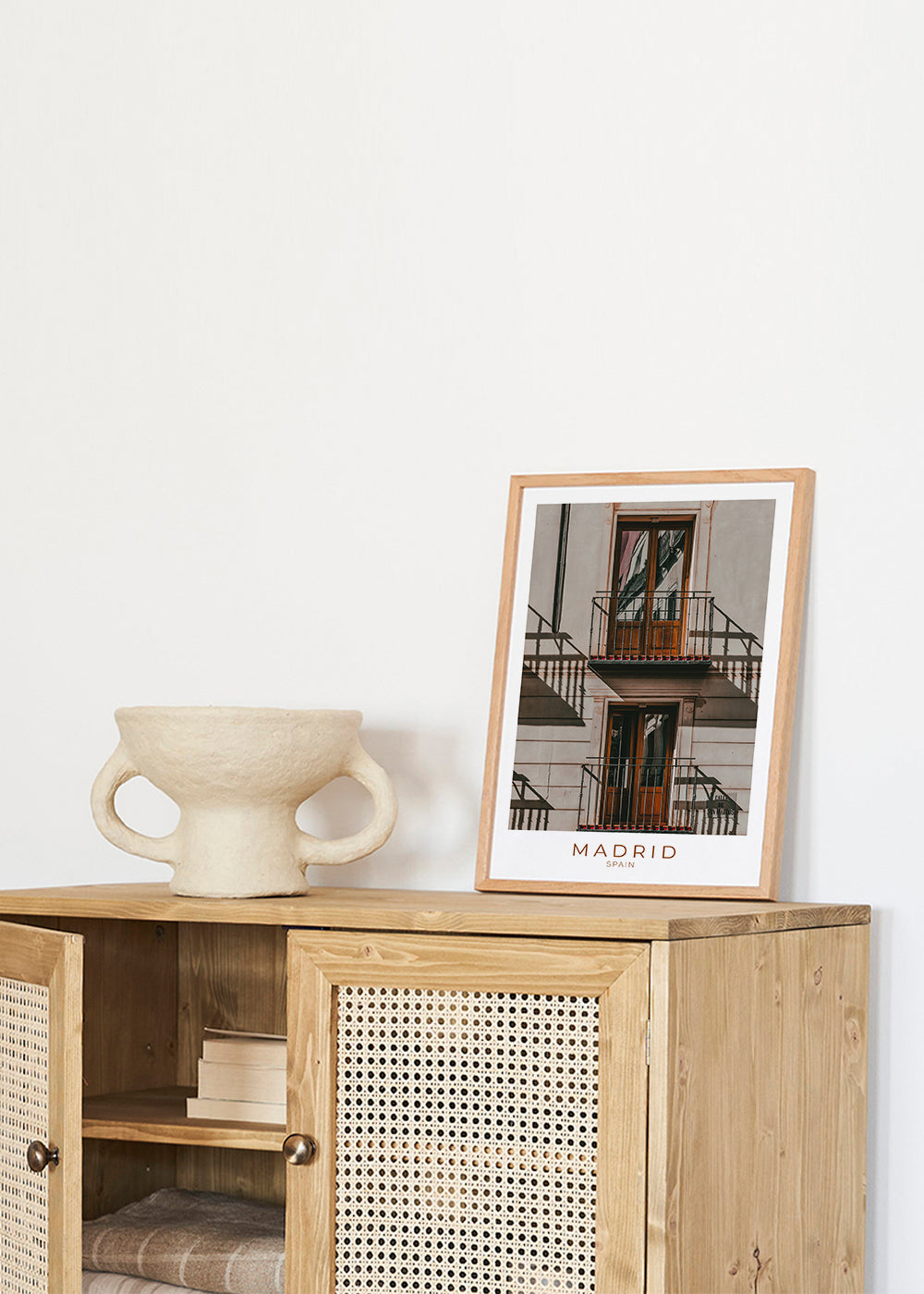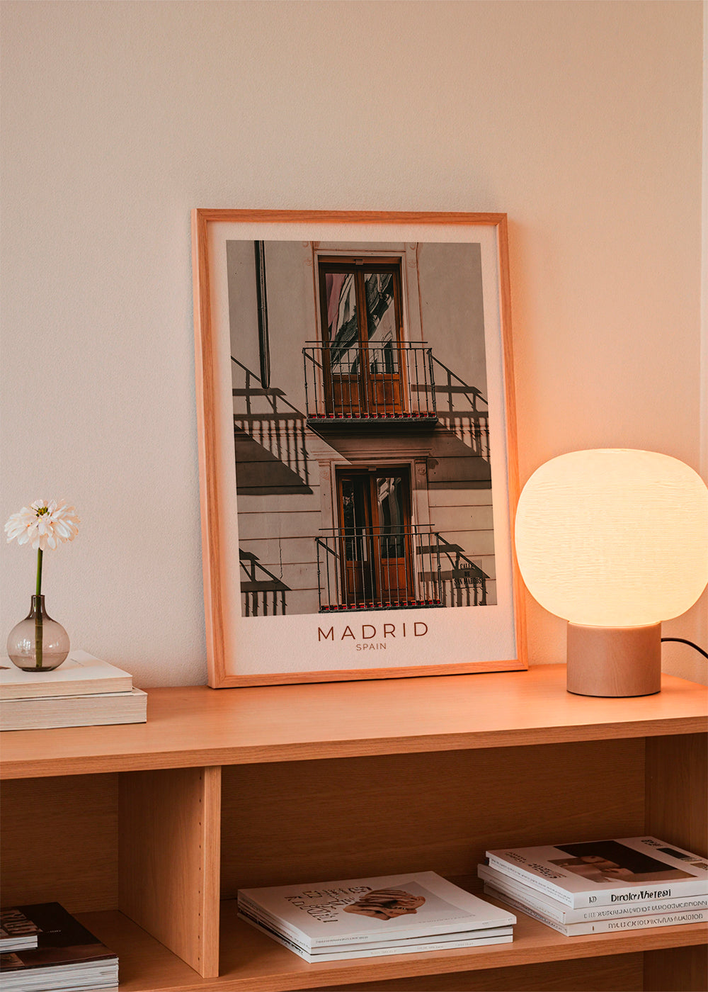 All our frames are manufactured in Spain. The white, black and oak frames are made of Ayous wood, and the oak ones are veneered in oak, while the metallic ones are made of aluminum.
