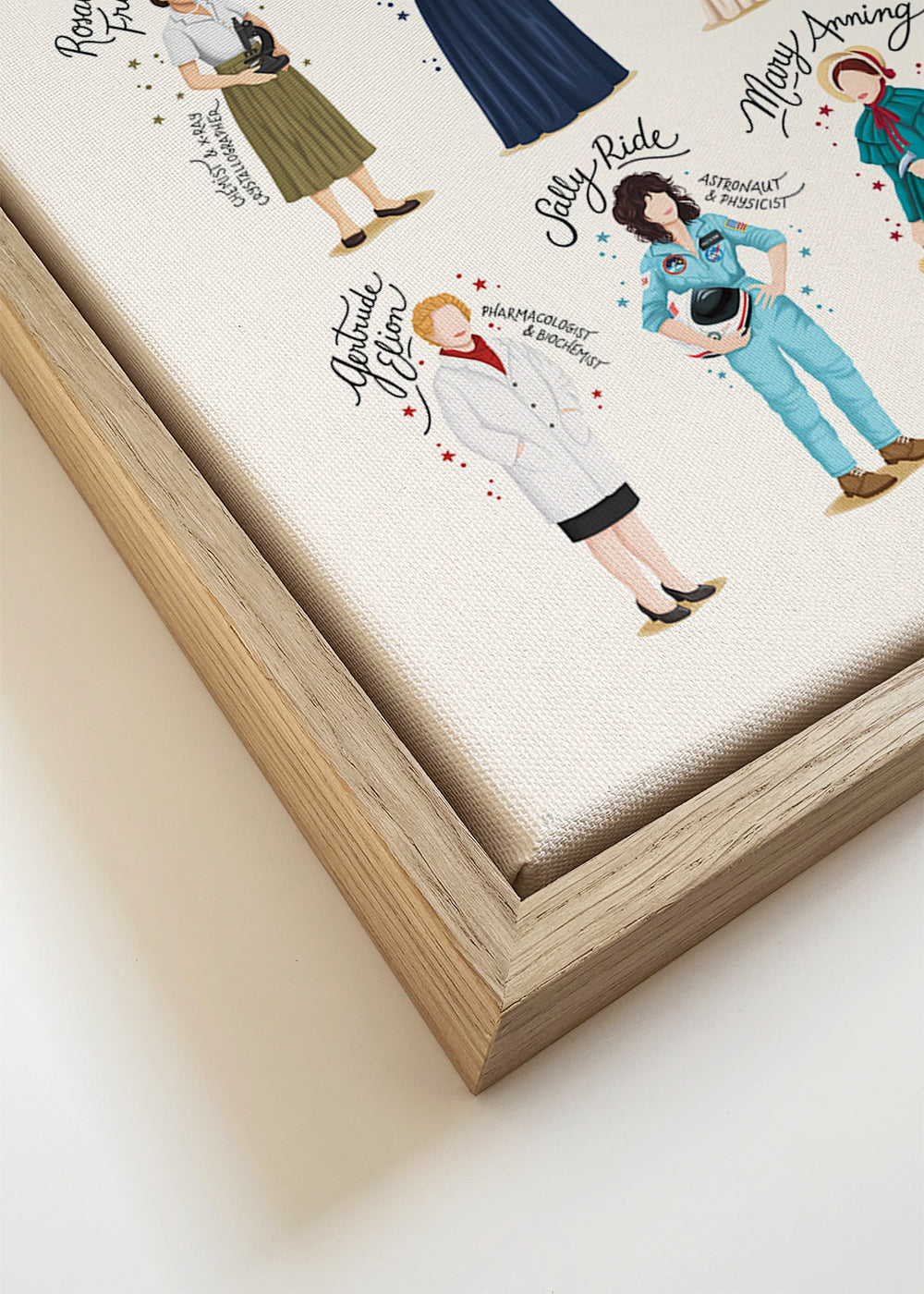 The wooden frames up to 20x28 in (included) have a width of 0.6 in and a depth of 1.2 in, while in the larger ones the width is 0.8 in and a depth of 1.2 in.
