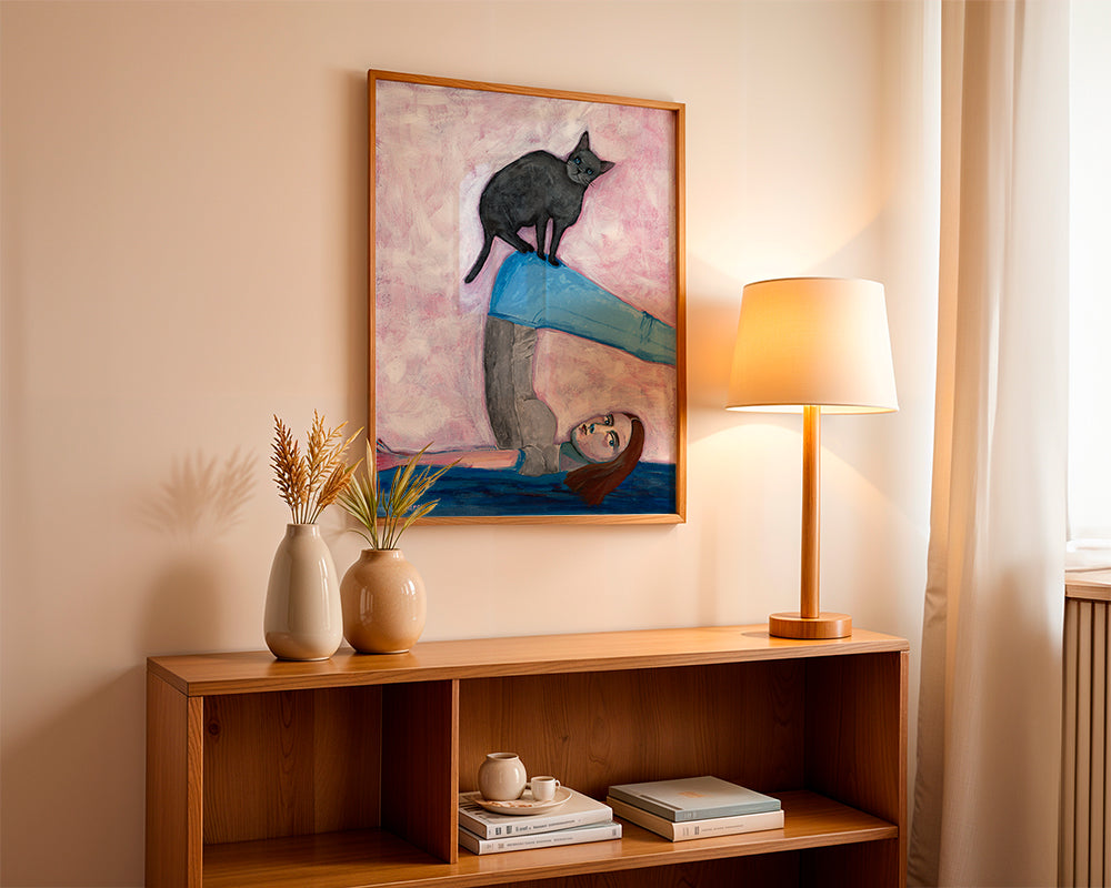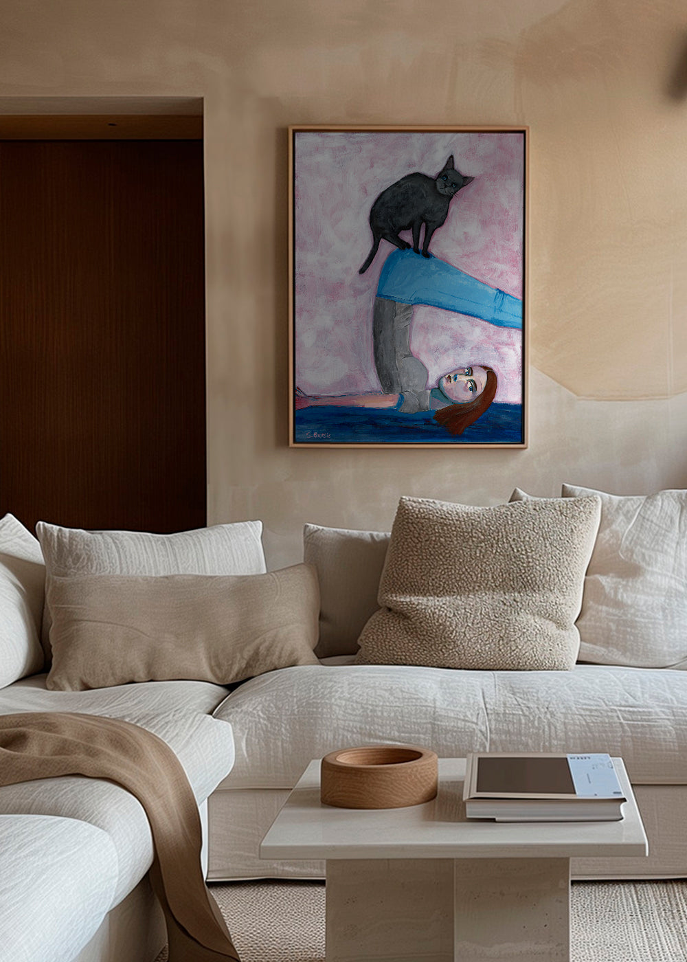Scandinavian wall art Yoga with my Cat - Sharyn Bursic