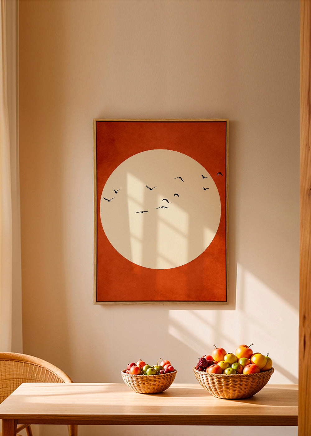 A design from our birds wall art category, by Kubistika, in tones of red, and vertical layout. Illustrated posters are perfect for pairing with minimalist and abstract art. Bring the walls of your home to life.