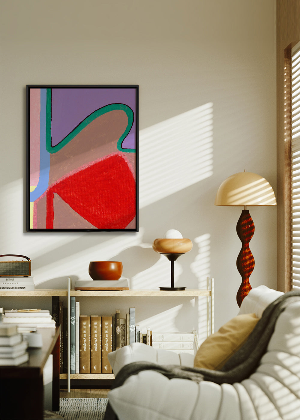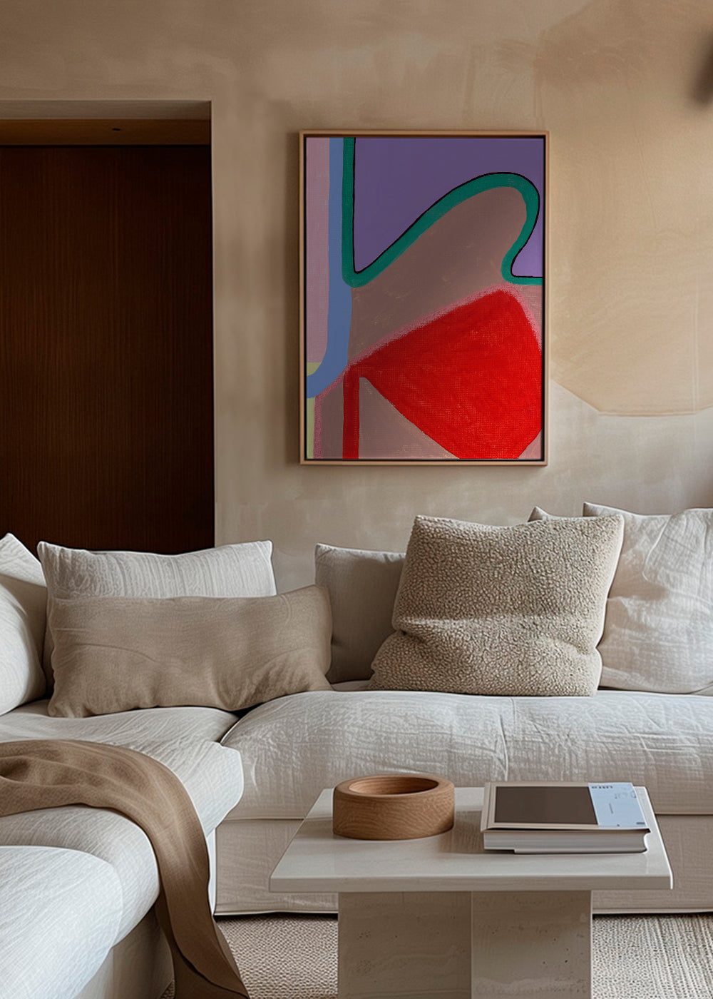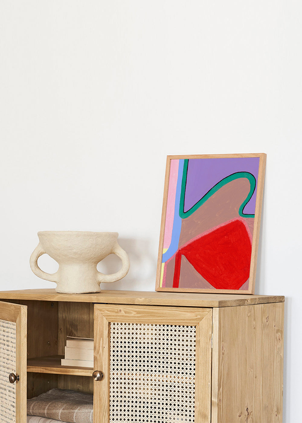 This poster from the geometric wall art and prints category, from the mind of Sophia Novosel, with red, and to hang in vertical position. The abstract, geometric shapes help create a casual, creative setting. The perfect combination of originality and design.