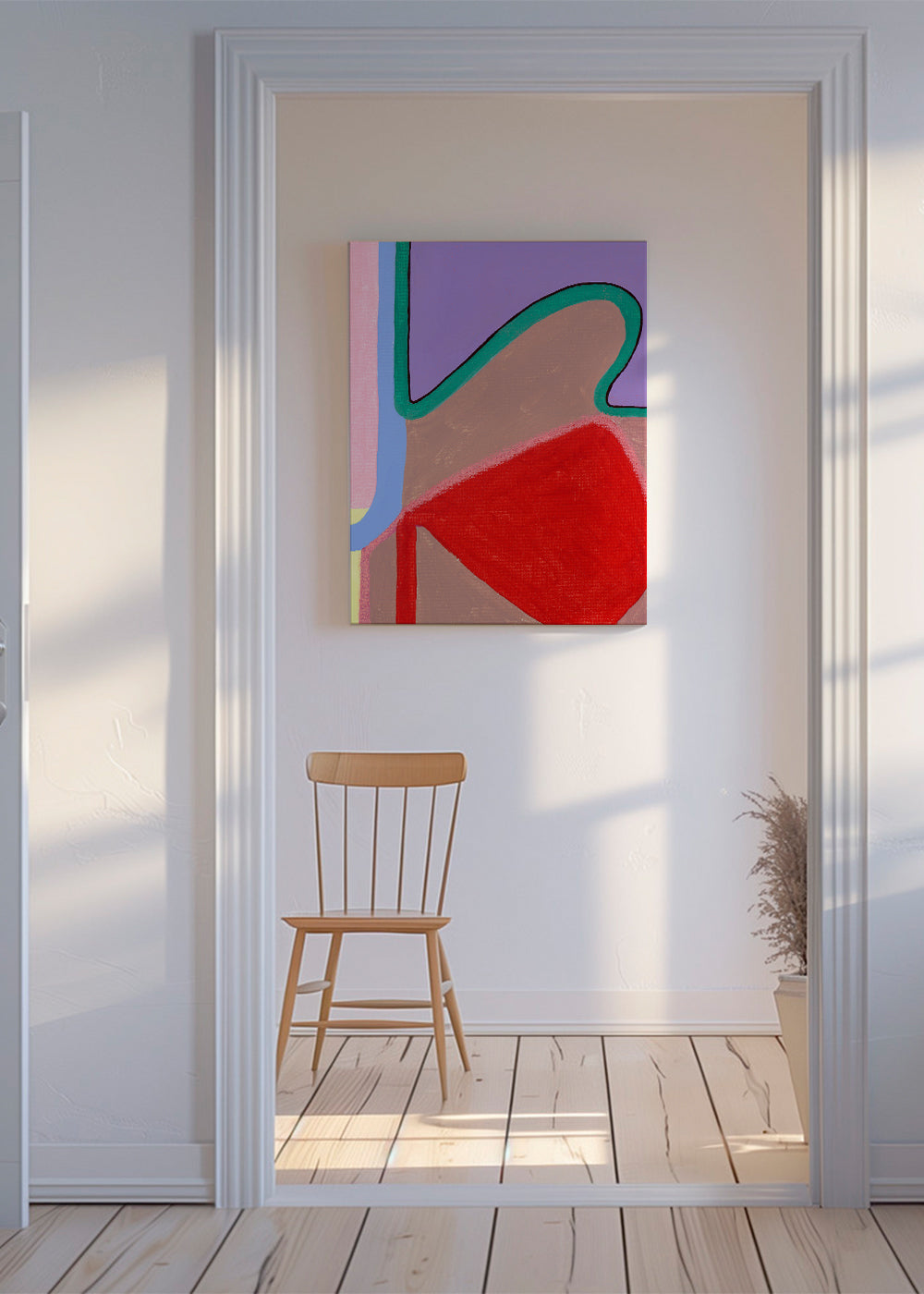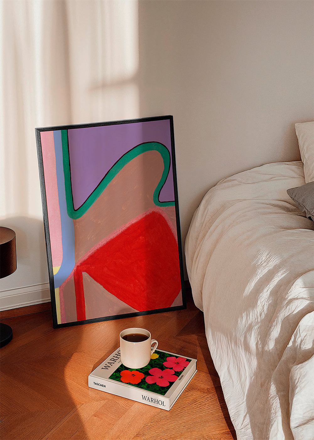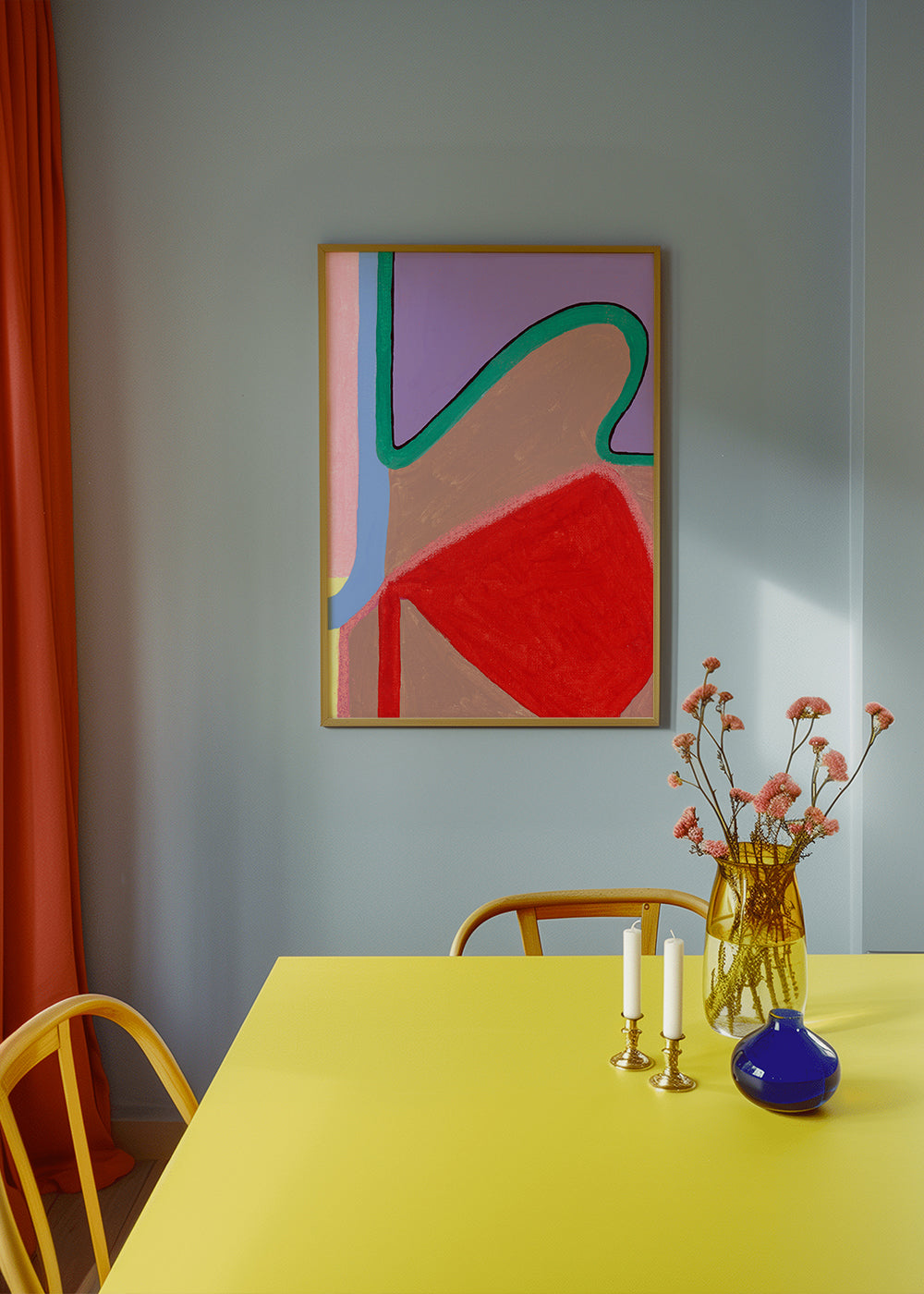 This poster from the geometric wall art and prints category, from the mind of Sophia Novosel, with red, and to hang in vertical position. The abstract, geometric shapes help create a casual, creative setting. The perfect combination of originality and design.