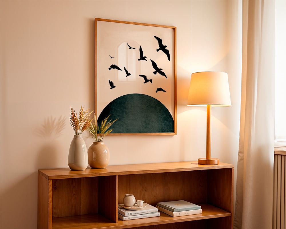 A print in the style of our birds wall art, by Kubistika, in green shades, and to hang in vertical position. A perfect piece for spaces bursting with art and creativity. Our drawings are perfect for decorating empty or boring spaces. Your home decor is in your hands.