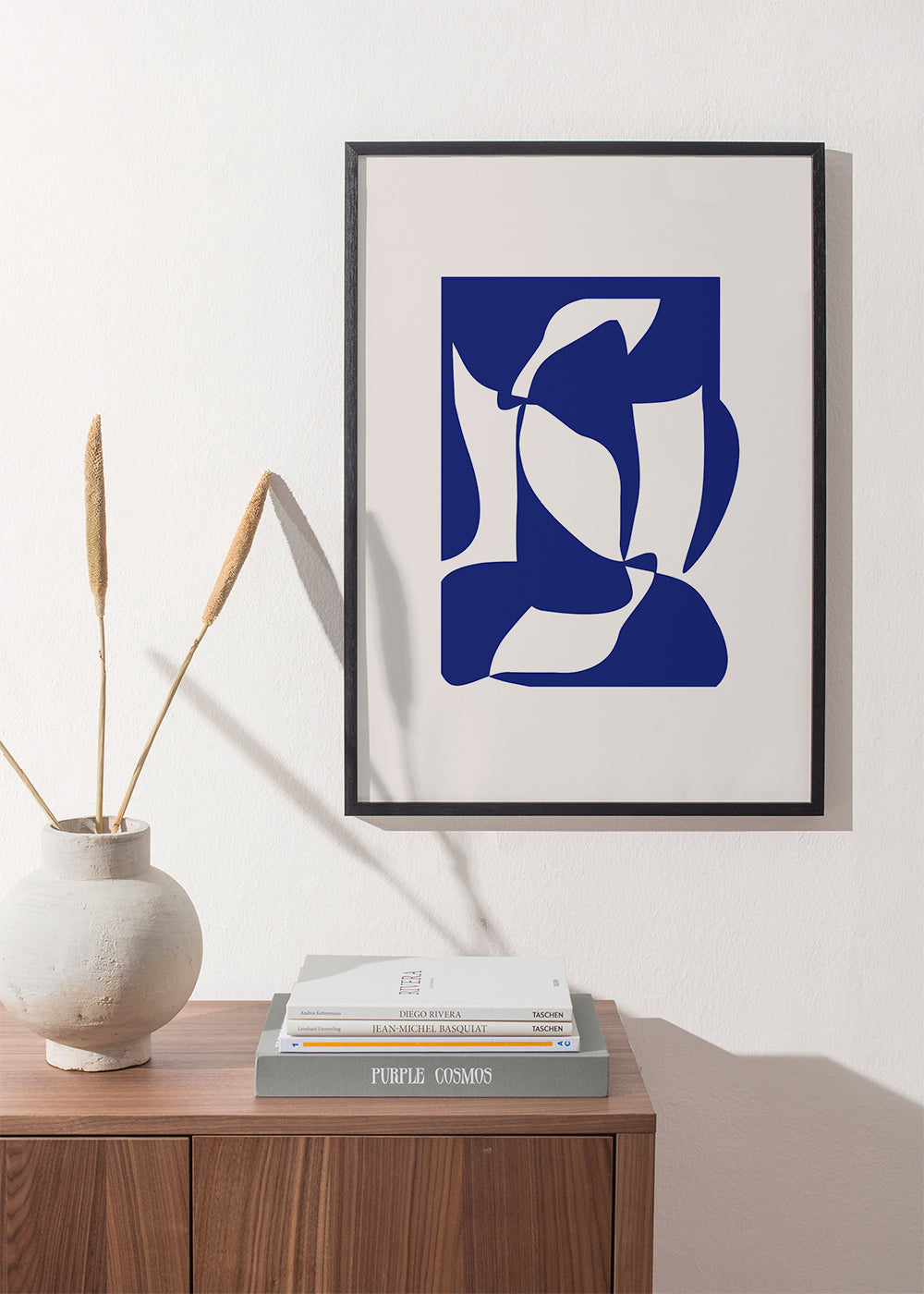 A print from our abstract wall art and prints series, by creative artist Anna Mainz, with blue, and with vertical layout. Abstract art awakens our minds and makes us reflect on the meaning of the pieces. Bring the walls of your home to life.