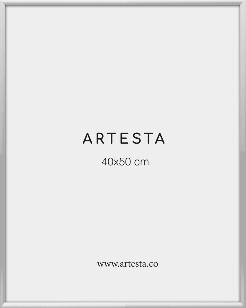 Silver aluminum frame for posters in size 16'' x 20'' in. The frame measures 1,8cm deep and 0,96cm wide and includes an acrylic glass that will protect your artwork.