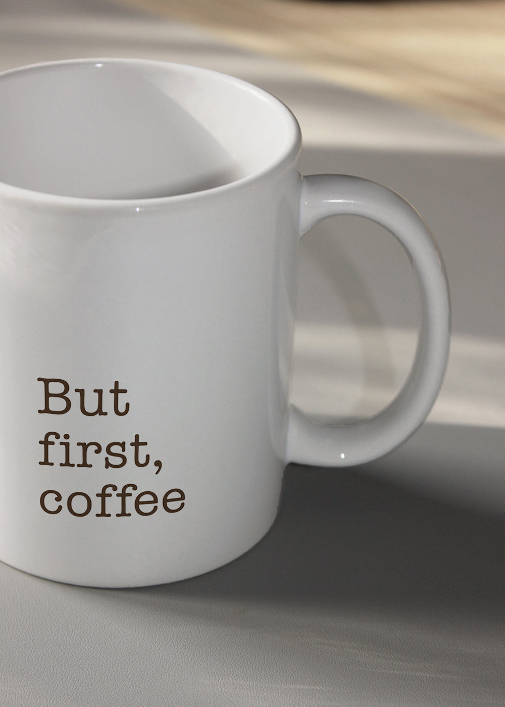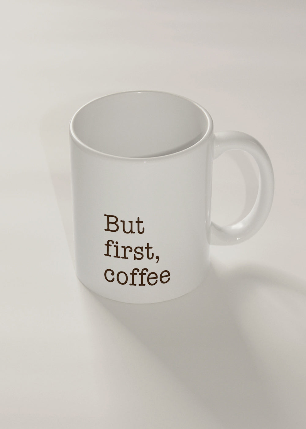 Taza blanca de cerámica de 325 ml con un diseño del artista Nouveau Prints. Las tazas de cerámica le dan robustez y elegancia a un regalo para empezar el día de la mejor manera posible.
