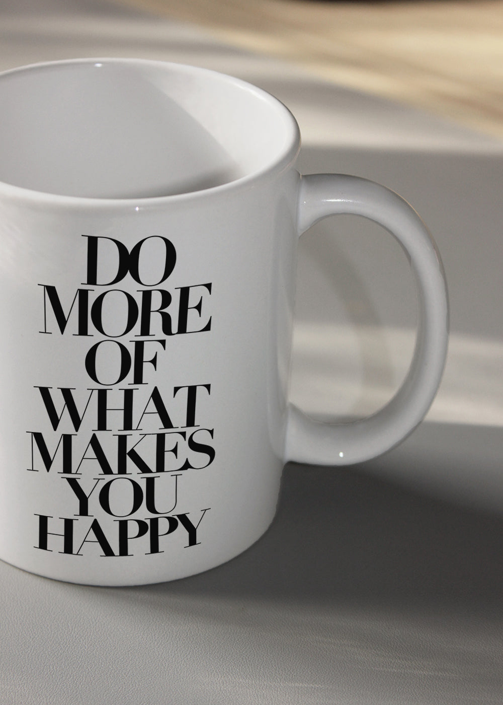 Taza blanca de cerámica de 325 ml con un diseño del artista Studio Mottos. Nunca tomarte el café a primera hora de la mañana, sentó tan bien.