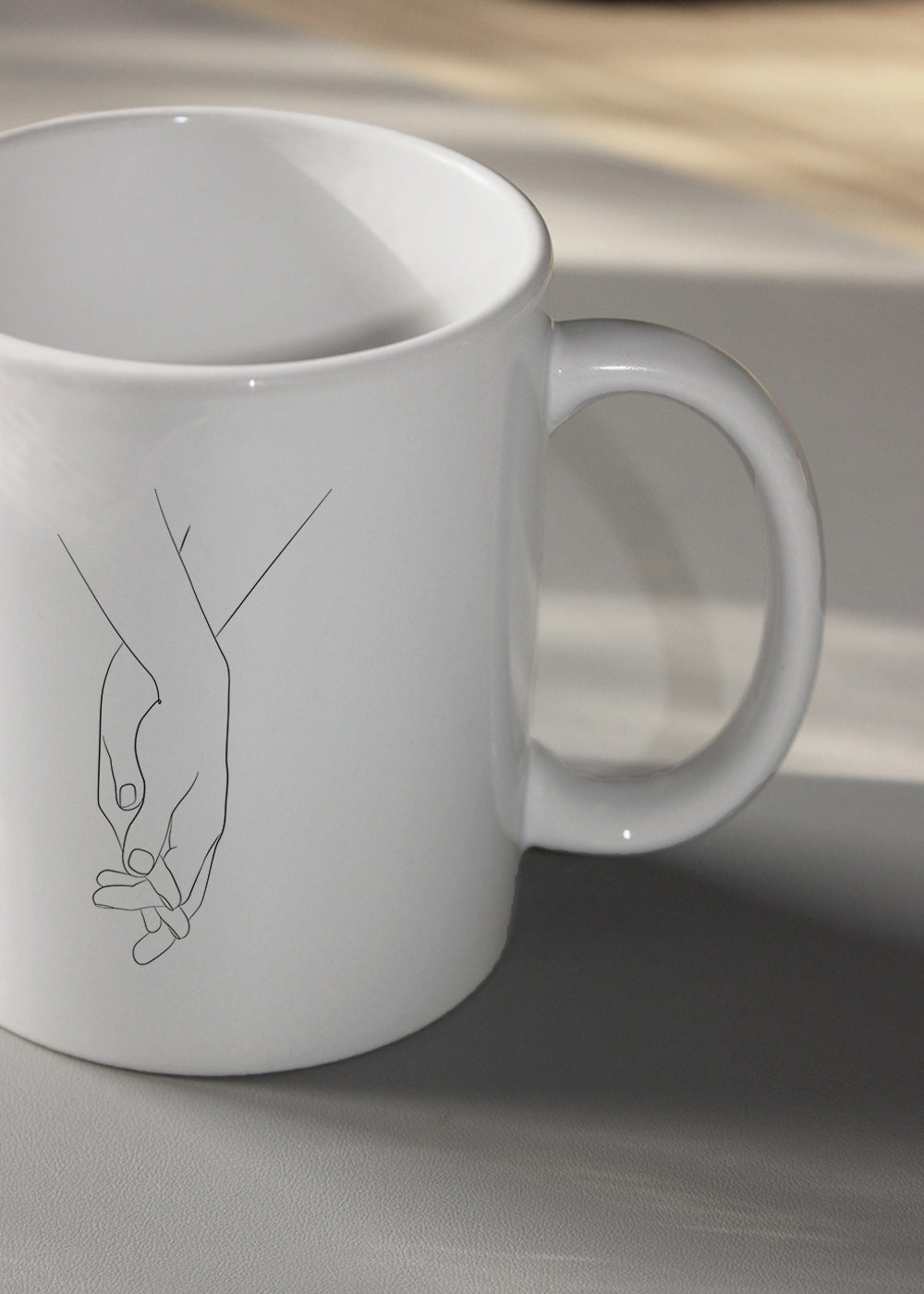Taza blanca de cerámica de 325 ml con un diseño del artista Nouveau Prints. Las tazas de cerámica le dan robustez y elegancia a un regalo para empezar el día de la mejor manera posible.