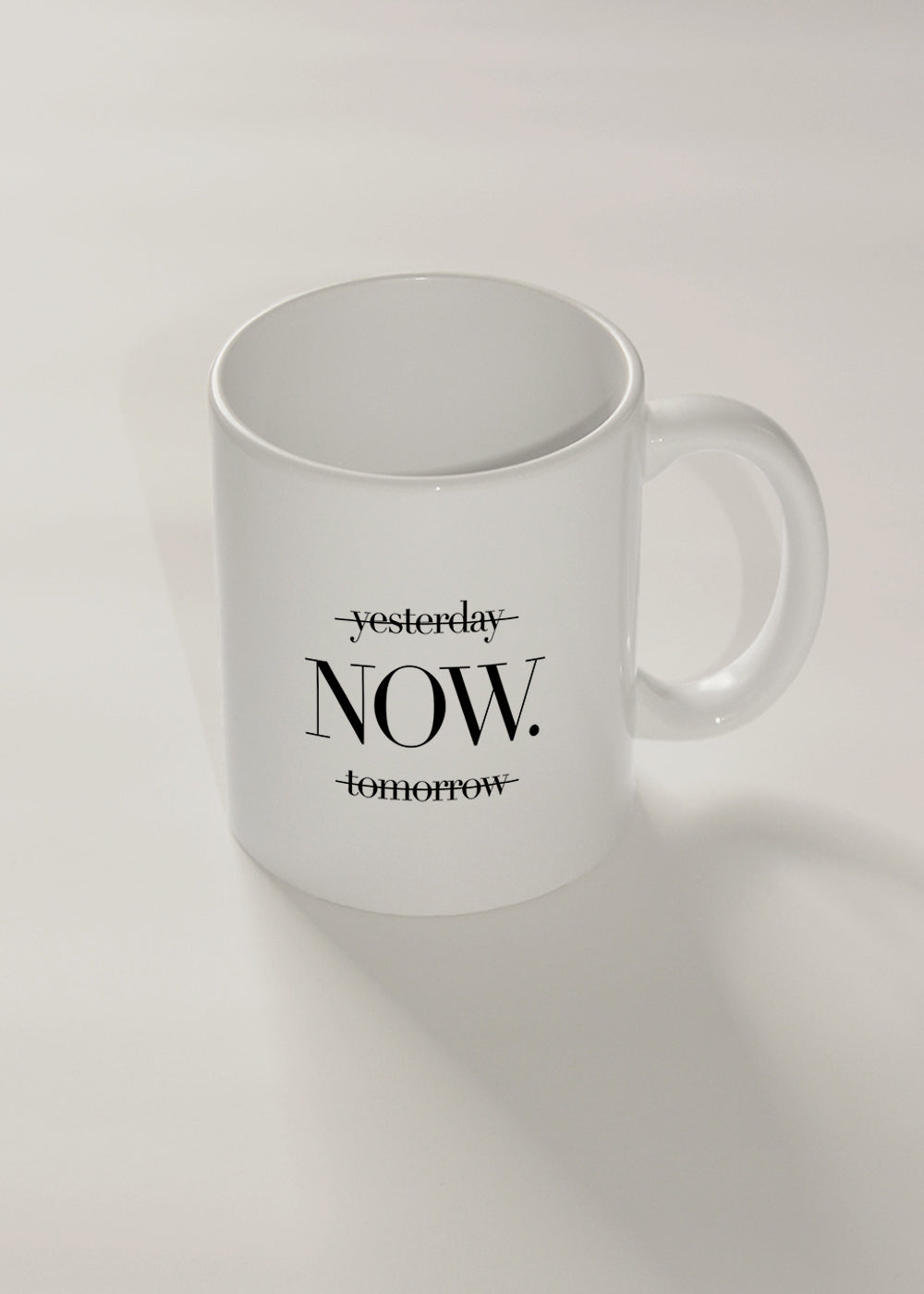 Taza blanca de cerámica de 325 ml con un diseño del artista Studio Mottos. Añade un accesorio original y divertido para tu cocina.