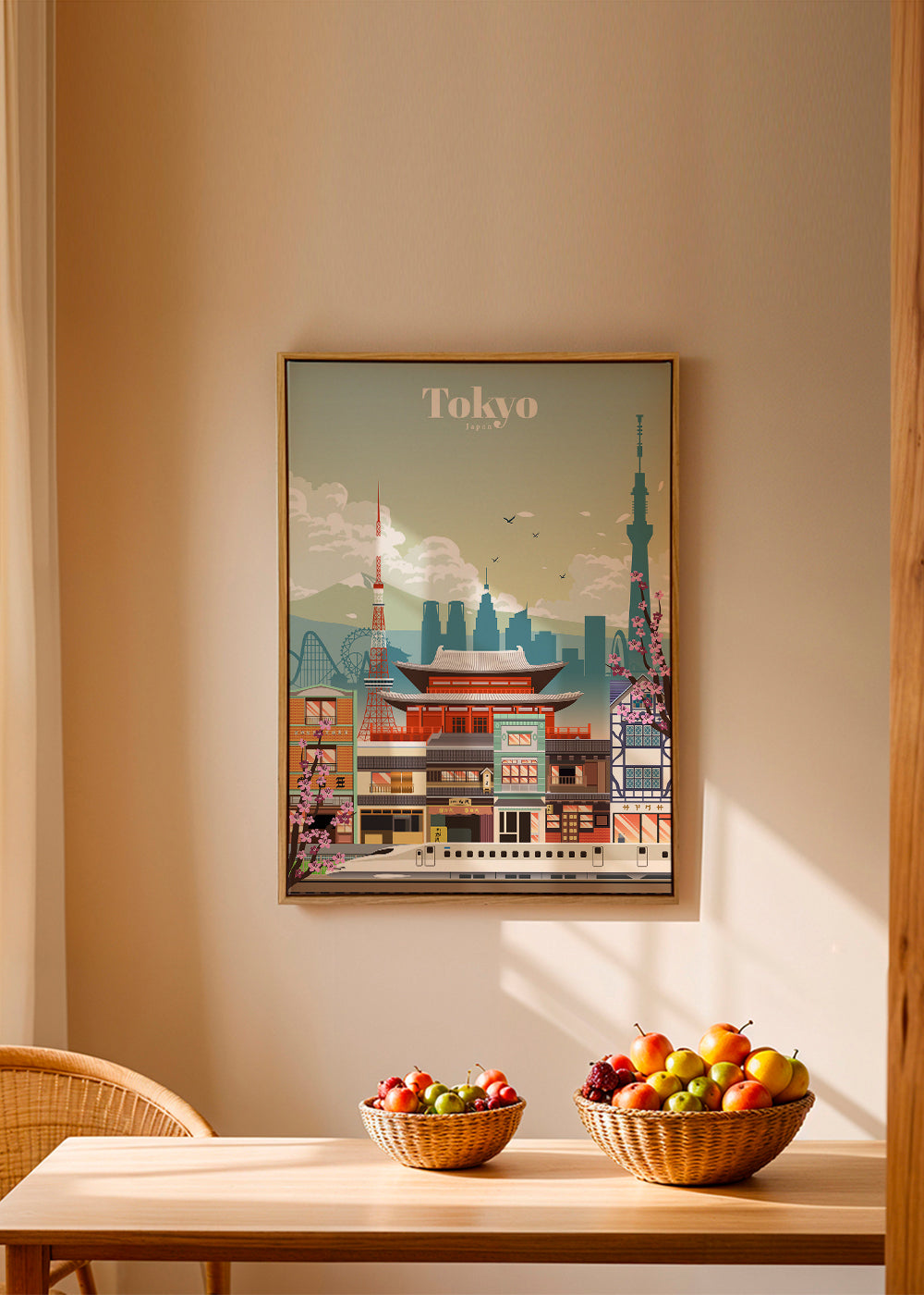 A print inspired by the collection of skylines canvas, by the artist Studio 324, in multicolor shades, and to hang in vertical position. Combine skylines, photos and city maps to create a composition for those with wanderlust. Pure art and design.
