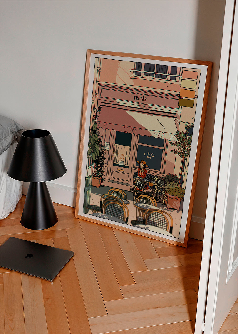 If you select the passepartout option, we will add the white matt board to the frame, and we will reduce the design of the work. For example, if you select a print size 20x28 in, with an oak colored frame and passepartout, we will reduce the design of the print to the previous size (16x20 in). In this way, it will adapt perfectly to the inside window of the passepartout.