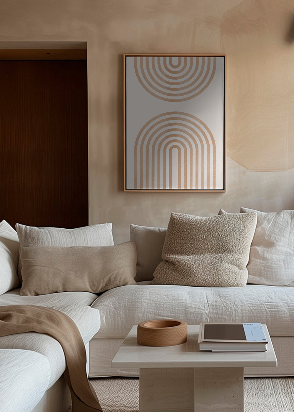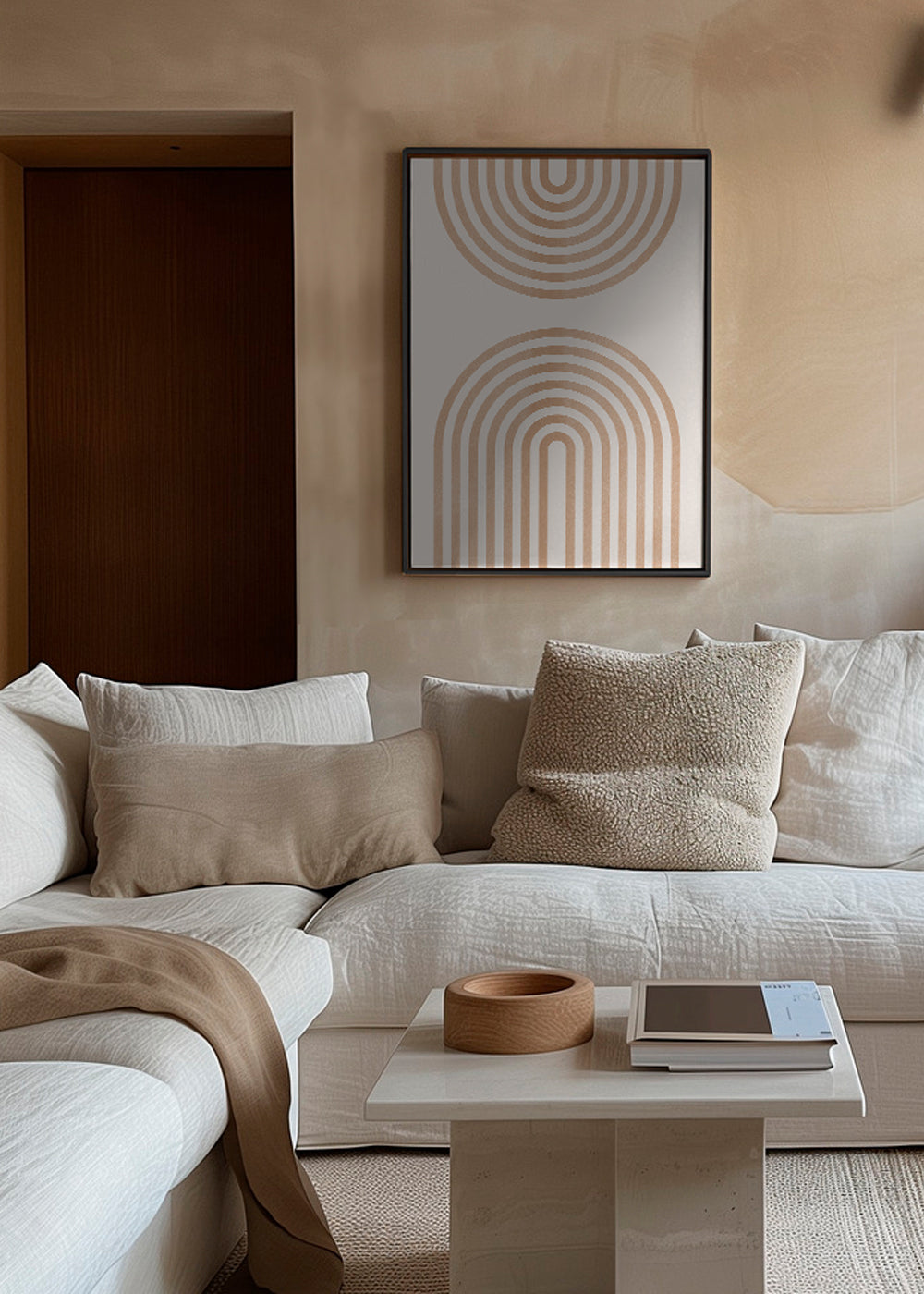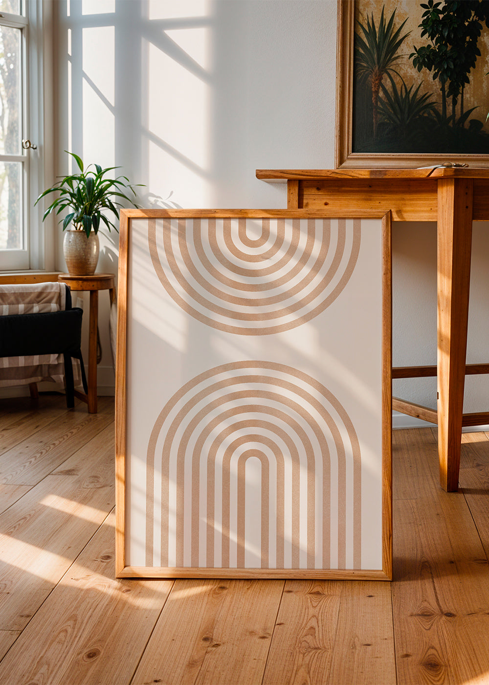 A poster from the geometric wall art and prints collection, from the collection of the artist Kathrin Pienaar, in tones of brown, and with vertical layout. Geometric art is an elegant style to decorate the walls of your home with. Let art flood your home.