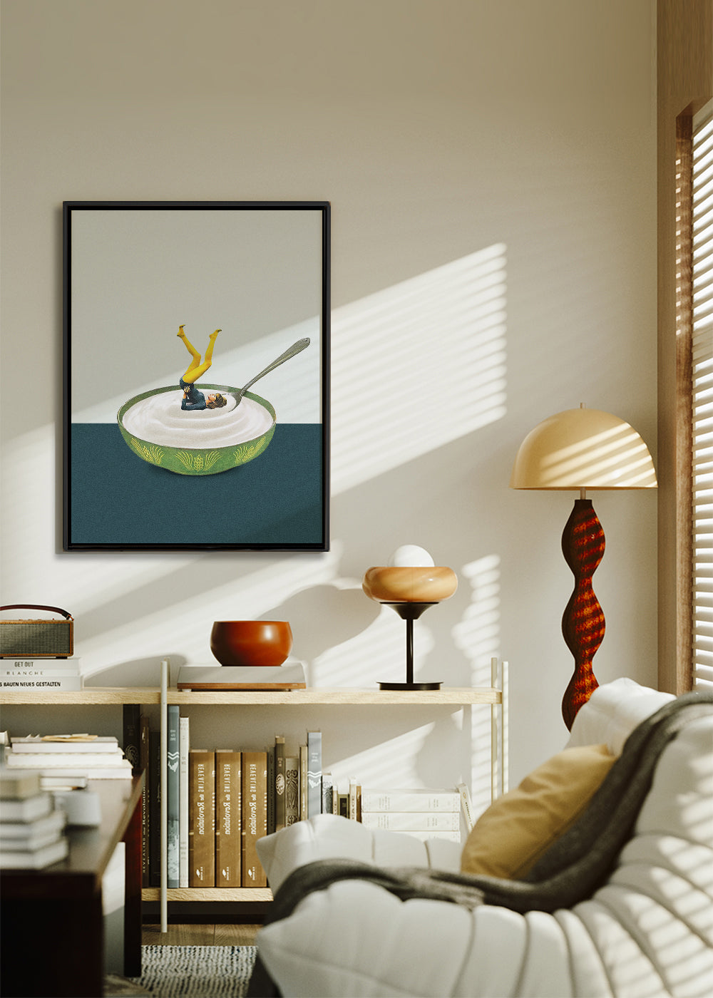 A print inspired by the collection of vintage wall art, from the mind of Maarten Léon, with shades of blue, and in vertical position. Vintage prints give a super chic touch to any space. Let art flood your home.