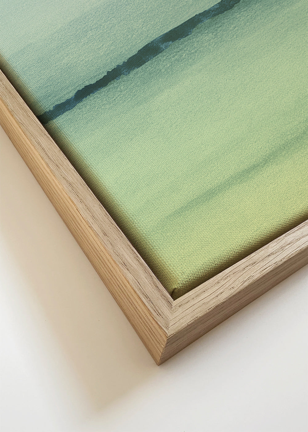 The wooden frames up to 20x28 in (included) have a width of 0.6 in and a depth of 1.2 in, while in the larger ones the width is 0.8 in and a depth of 1.2 in.