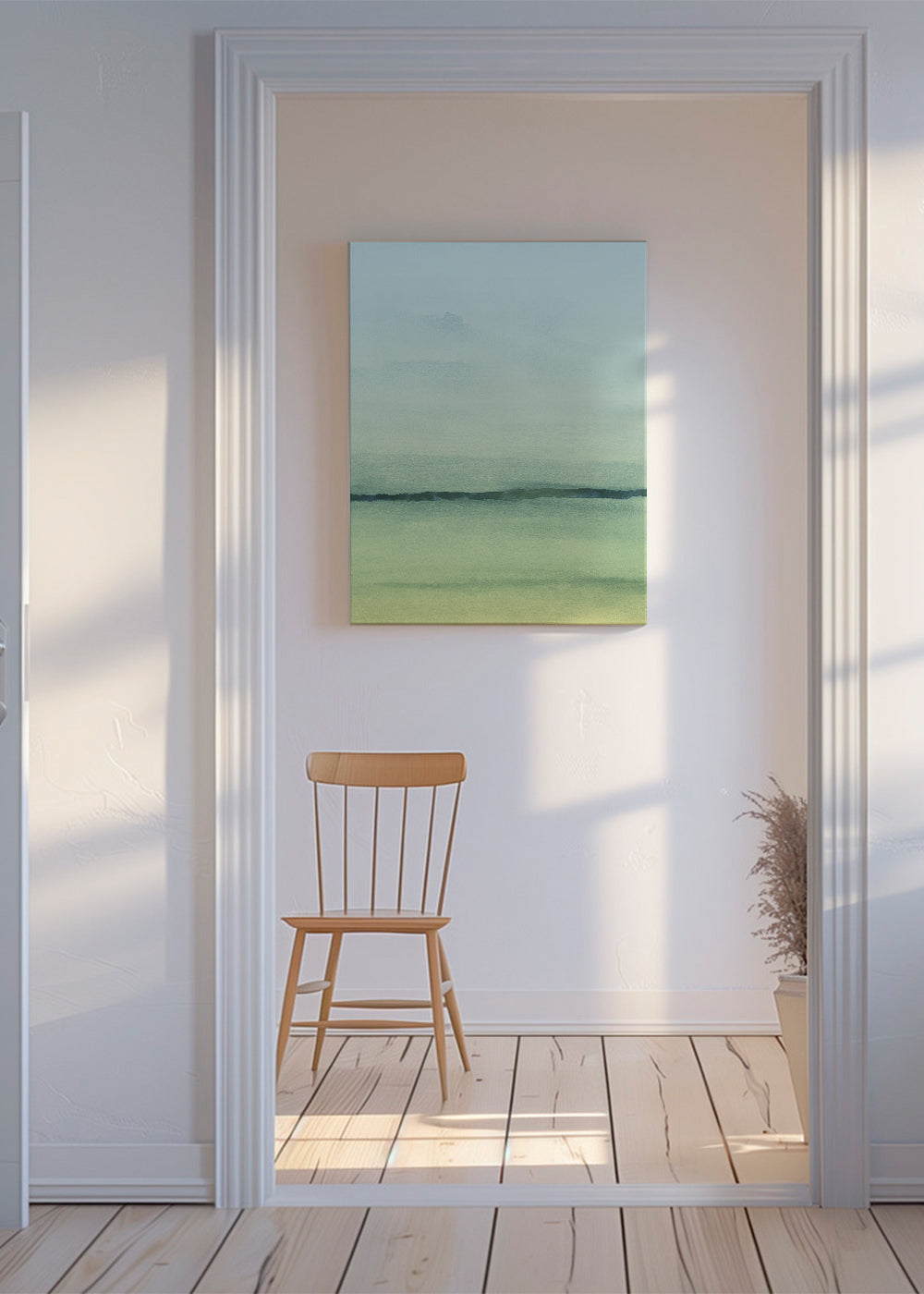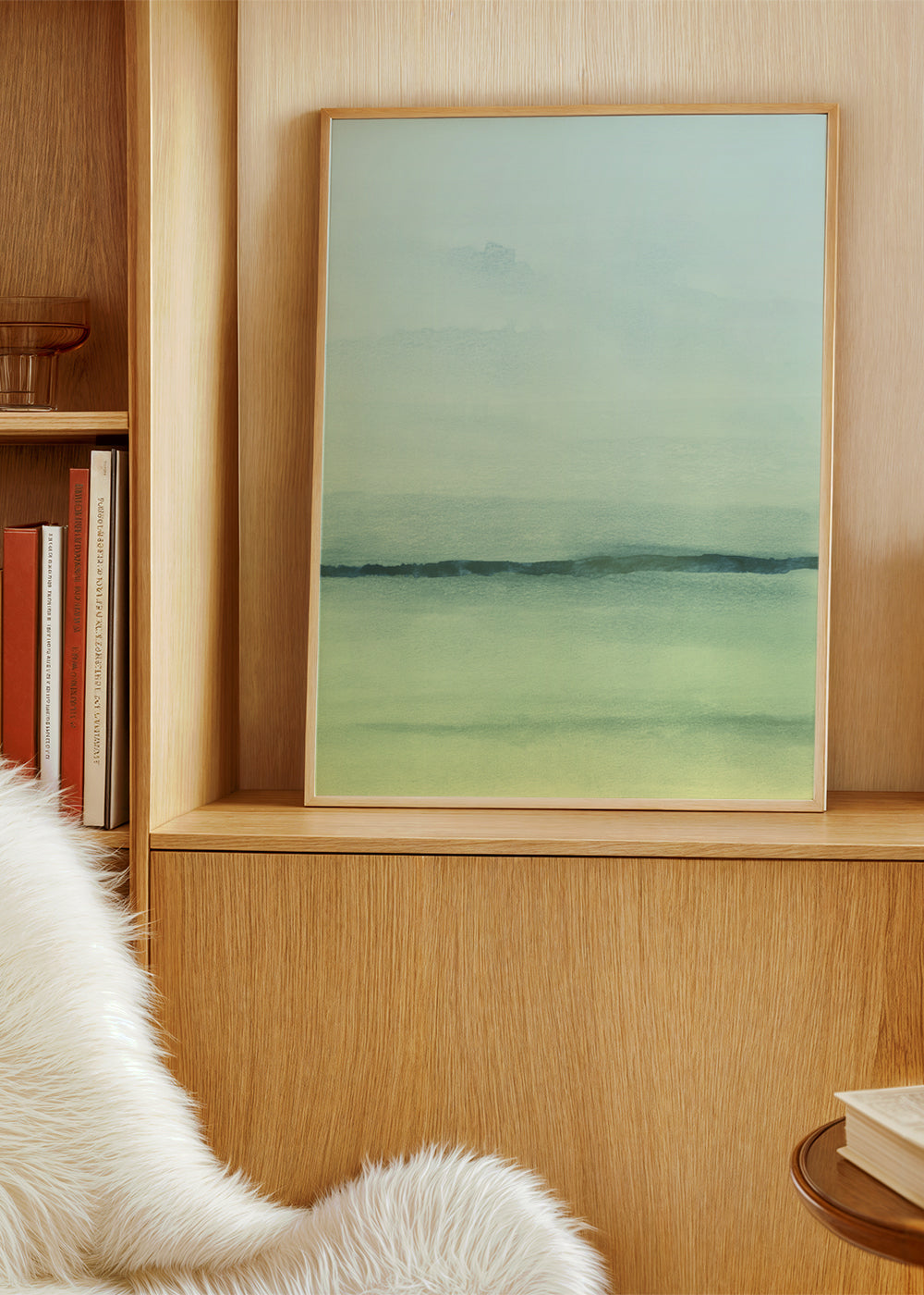 Beautiful print from our selection of landscape wall art, from the Nouveau Prints collection, in tones of blue, and to hang in vertical position. Nature in all its splendour, landscape prints convey a sense of calm. Elegant walls for chic homes.