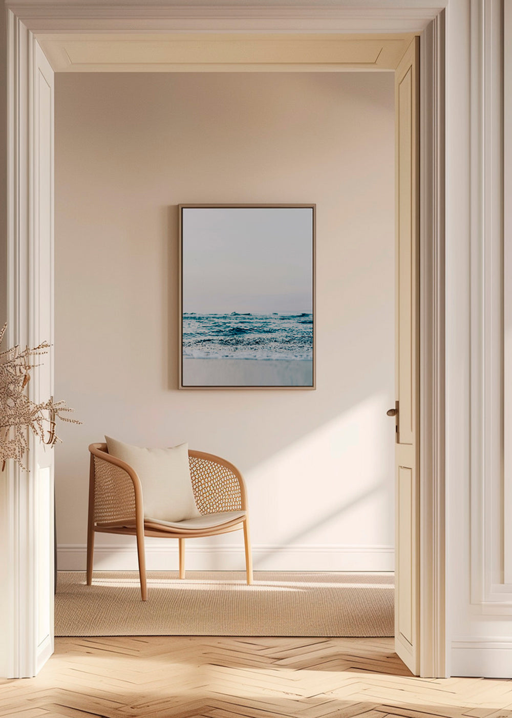 A print inspired by the collection of beach wall art, from the collection of the artist Kathrin Pienaar, with tones of blue, and with vertical layout. Landscape prints are spectacular; pair them with texts and phrases to create cool wall compositions. The final touch for your home decor.