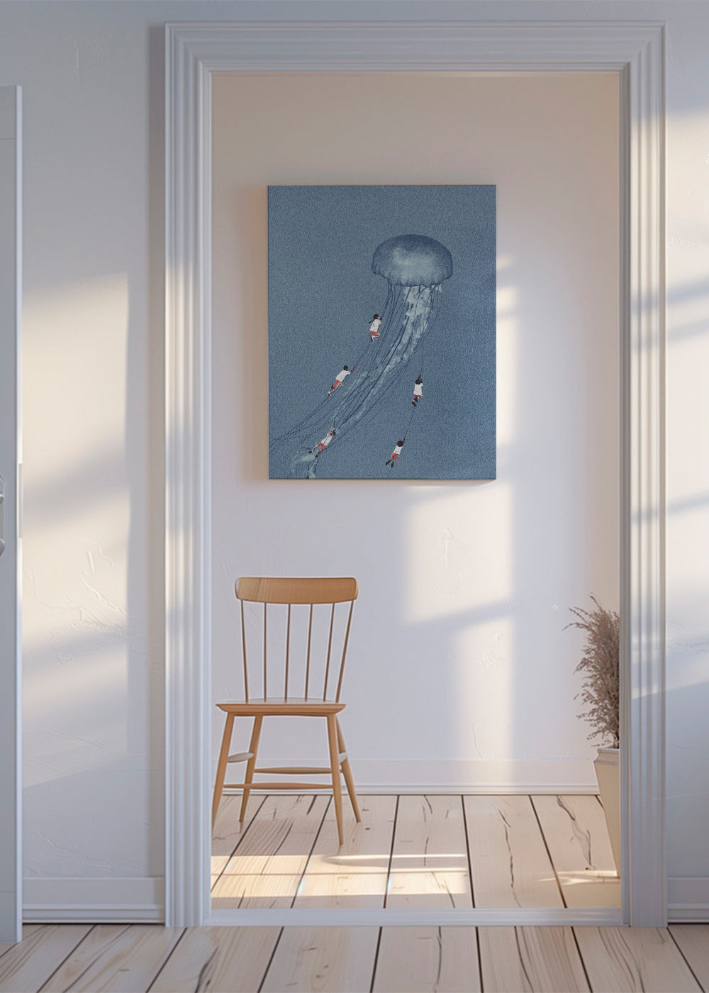 Beautiful print from our selection of vintage wall art, by the artist Maarten Léon, in tones of blue, and vertical layout. A retro poster you can pair with other vintage-style prints for an original touch in the home. Let your walls tell a story.
