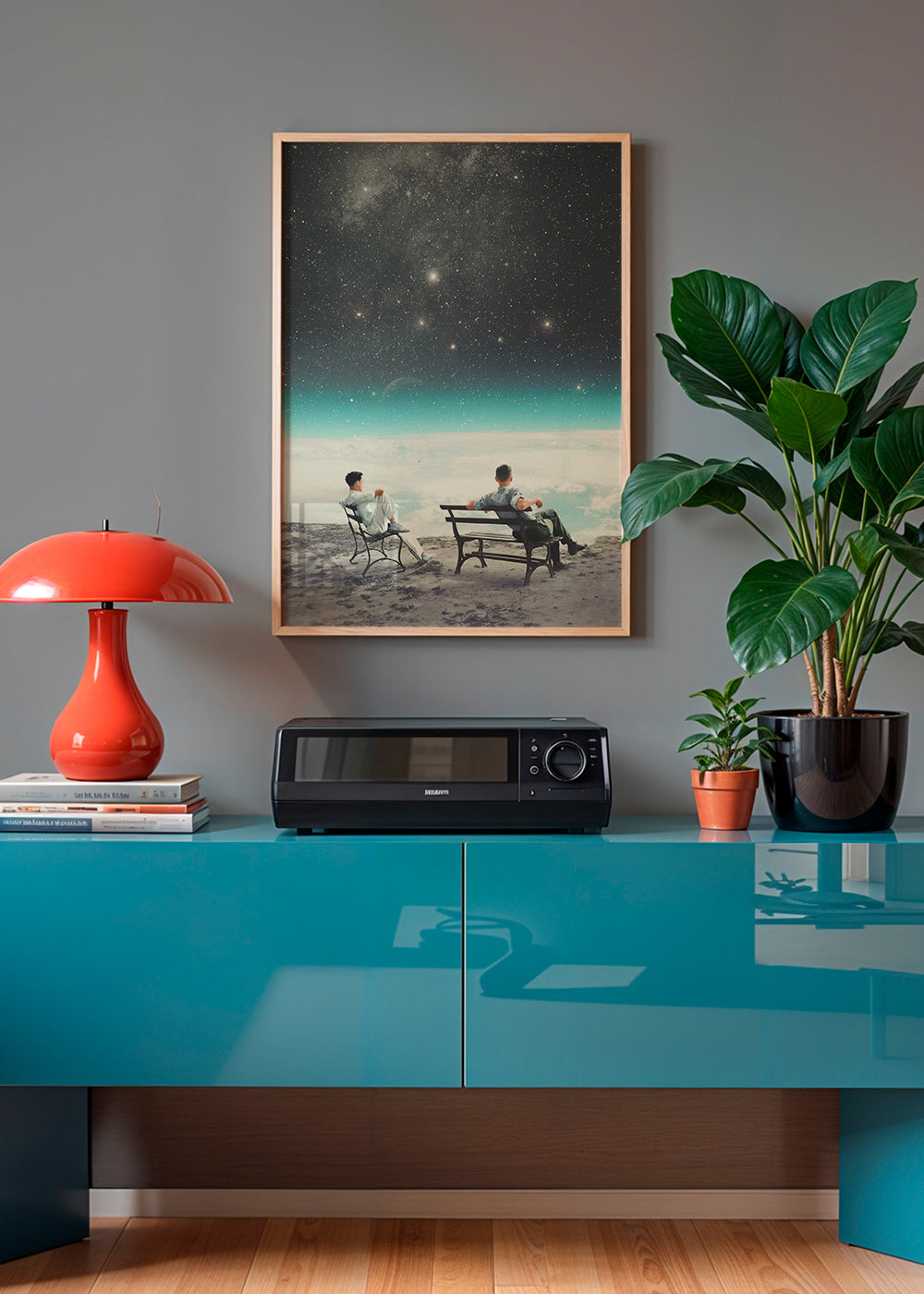 This print from our vintage wall art collection, made by Frank Moth, with shades of blue, and facing vertically. If you're looking for a retro element to add to your decor, this design is perfect for you. Pair it with other vintage posters for a highly original style. Fill your decoration with art.